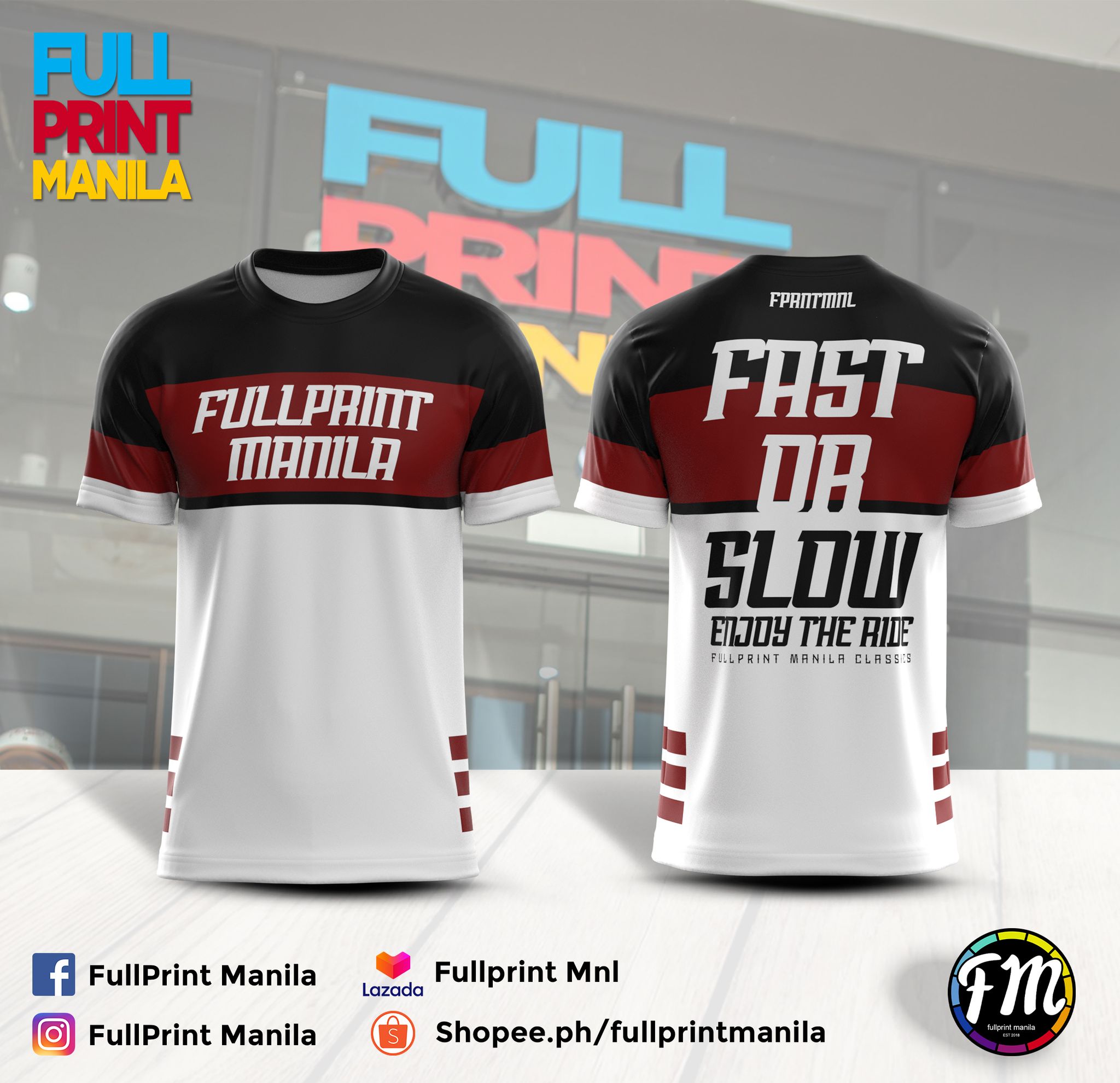 Embrace the thrill of the journey with the FPM T-Shirt Design 02, a bold addition to FullPrint Manila’s collection. Featuring sleek black, red, and white accents, this design celebrates speed and style with the statement “Fast or Slow, Enjoy the Ride.”